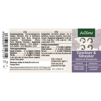 AniForte BachblĂĽten Gewitter & Silvester ist eine Spezialmischung fĂĽr Hunde, Katzen, Kleintiere und Pferde.