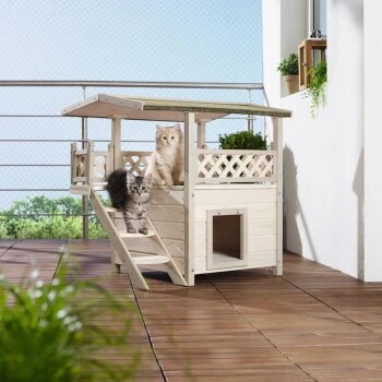 Das AniOne Katzenhaus ist vielseitig nutzbar. Ob Balkon, Terrasse oder Garten – das Katzenhaus ist wetterbestĂ€ndig und auch ideal fĂŒr den AuĂenbereich geeignet.