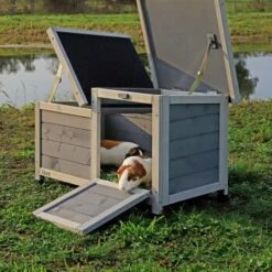 - WETTERFEST. Die beiden wasserfesten Dächer mit Bitumenbelag sorgen für trockene Aufenthalte. Sie sind aufklappbar und ermöglichen somit einen schnelleren Zugang zu Ihrem Tier und erleichtern die Reinigung des Kaninchenstalls