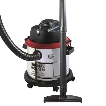 Der THOMAS INOX 1530 gehört zu den Multisaugern und ist ausgestattet mit einem Profizubehörsystem von Ø 55 mm. Damit macht er sich insbesondere auf großen Flächen und bei der Beseitigung von gröbstem Schmutz verdient. Wo herkömmliche Staubsauger überfordert sind, spielt er seine Stärken aus: Feuchtes Laub, verstopfte Abflüsse, grobe Holzspäne und ähnliche Verschmutzungen sind für ihn ein Leichtes.