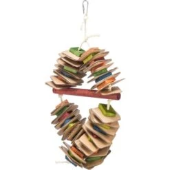 Das farbenfrohe, abwechslungsreiche Spielzeug von Trixie aus Pappe, bunten Holzklötzen, Sisalseil und vielen kleinen Elementen beschäftigt jeden Großsittich und Papagei. Mit praktischer Metallaufhängung.